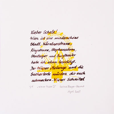 Siebdruck: Gelb mit Schrift in Schokobraun