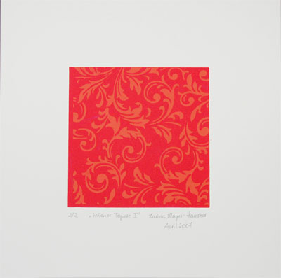 Siebdruck: Tapetenmuster in Orange auf Rot