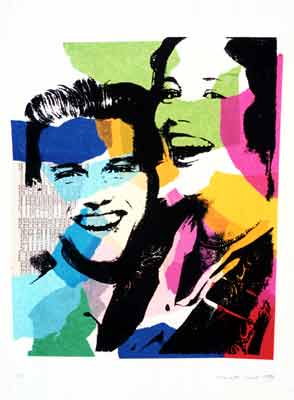 Siebdruck: Schwarz auf Collage aus Seidenpapier
