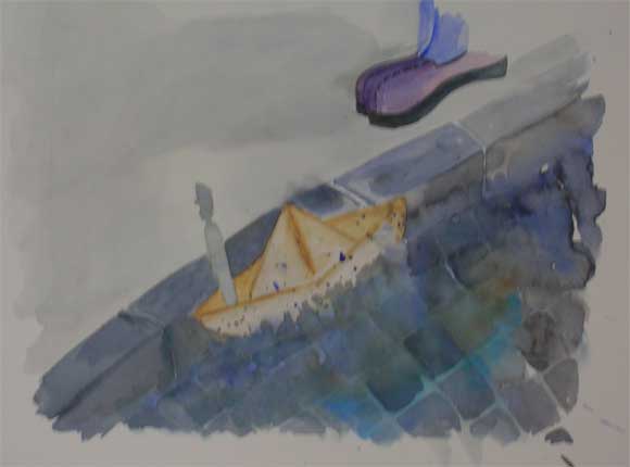 -In dem Papierschiffchen, das den Rinnstein entlang gefahren kam, stand ein Zinnsoldat und die Jungen sahen, dass er nur ein Bein hatte......